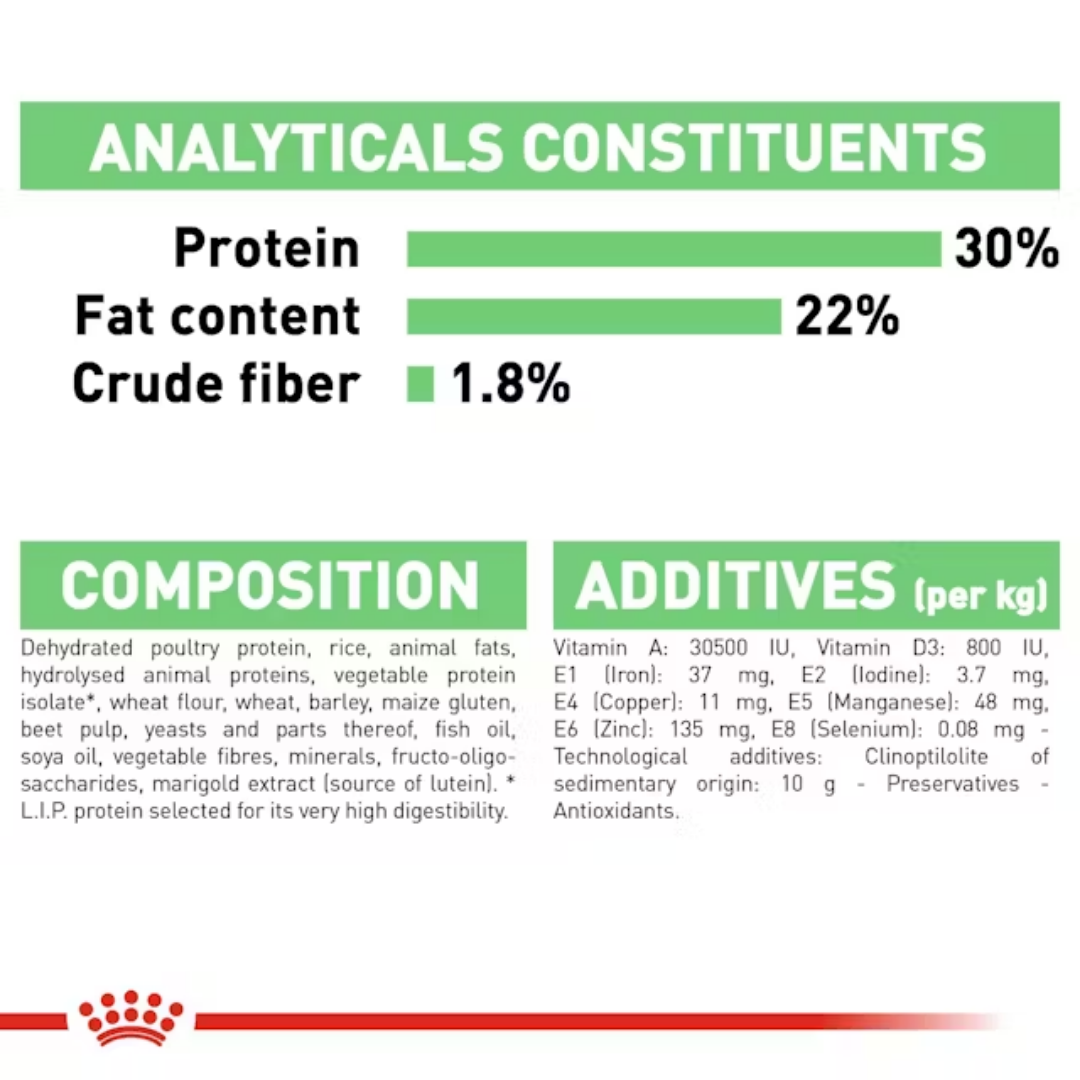 A precisely balanced nutritional formula that helps support optimal digestive health. It contains highly digestible proteins (*L.I.P.) a blend of prebiotics and fibres to promote a balanced intestinal flora and help promote optimal stool quality.