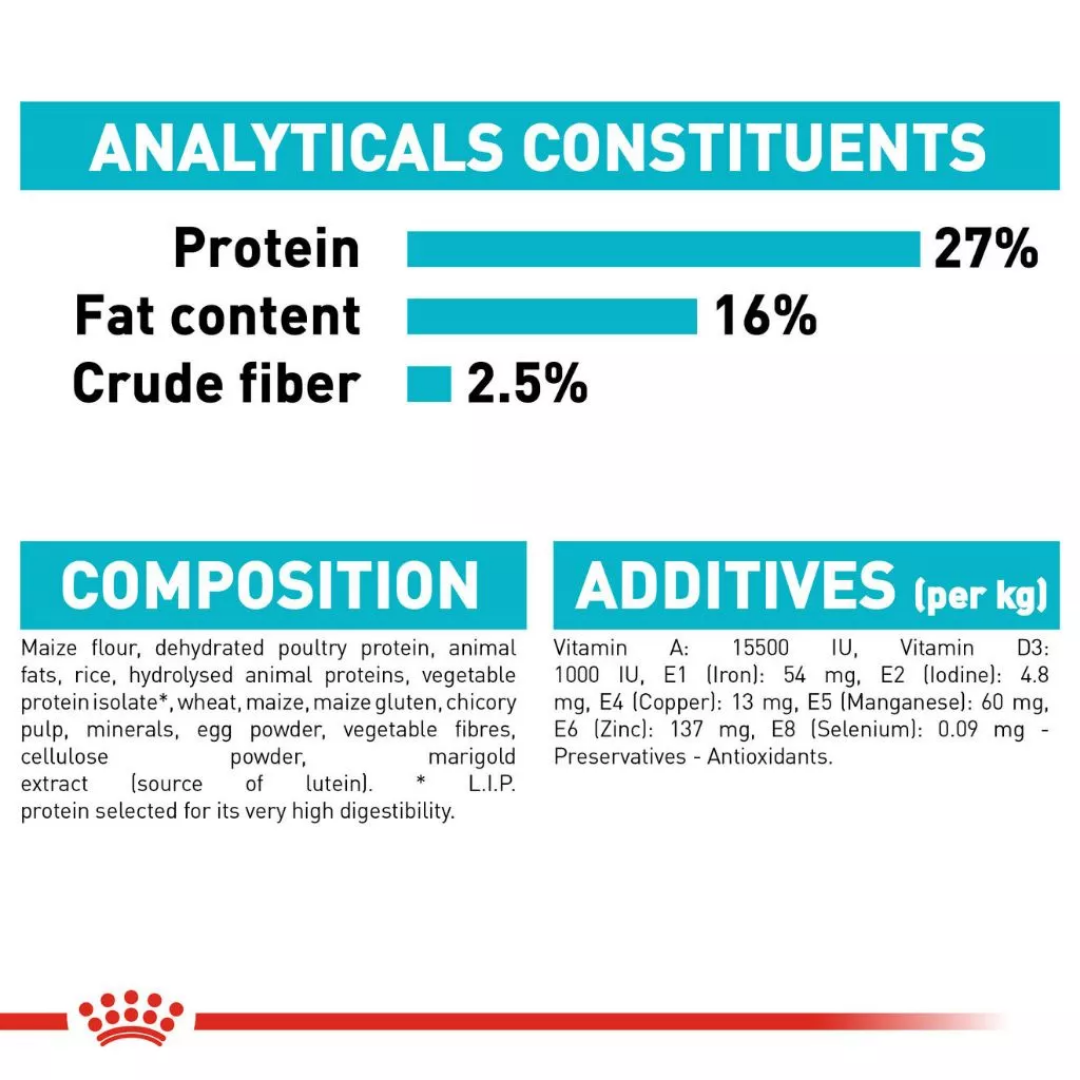 The urinary tract is often a concern in dogs. If your dog doesn’t drink enough water, his urine can become too concentrated. Minerals in urine can then form crystals – eventually leading to painful stones. Adapting your dog’s nutrition can help protect his urinary system and reduce the chances of stone formation. That means less worry and more carefree living! ROYAL CANIN® Urinary Care Mini is suitable for dogs prone to urinary sensitivities that weigh up to 10kg. This kibble is specially formulated to help your dog drink more water. Extra water has a double effect. Firstly, it rinses through your dog’s bladder. Secondly, it dilutes urine, creating a less favourable environment for crystals and stones to form. All ROYAL CANIN® foods are nutritionally complete and contain 100% of the quality proteins, fats, fibers, vitamins, and minerals that your dog needs for lifelong wellbeing. Our Urinary Care nutritional program has two components available: crunchy kibble and a delicious pâté in a pouch, both are nutritionally complete and perfectly complement each other. Why not try the pâté as a delicious topping to the kibble? Don’t just take our word for it, ROYAL CANIN® Urinary Care Mini’s results are a proven success. Scientifically tested at the ROYAL CANIN® kennels, testing of this product yielded a 21% increase in urine dilution.